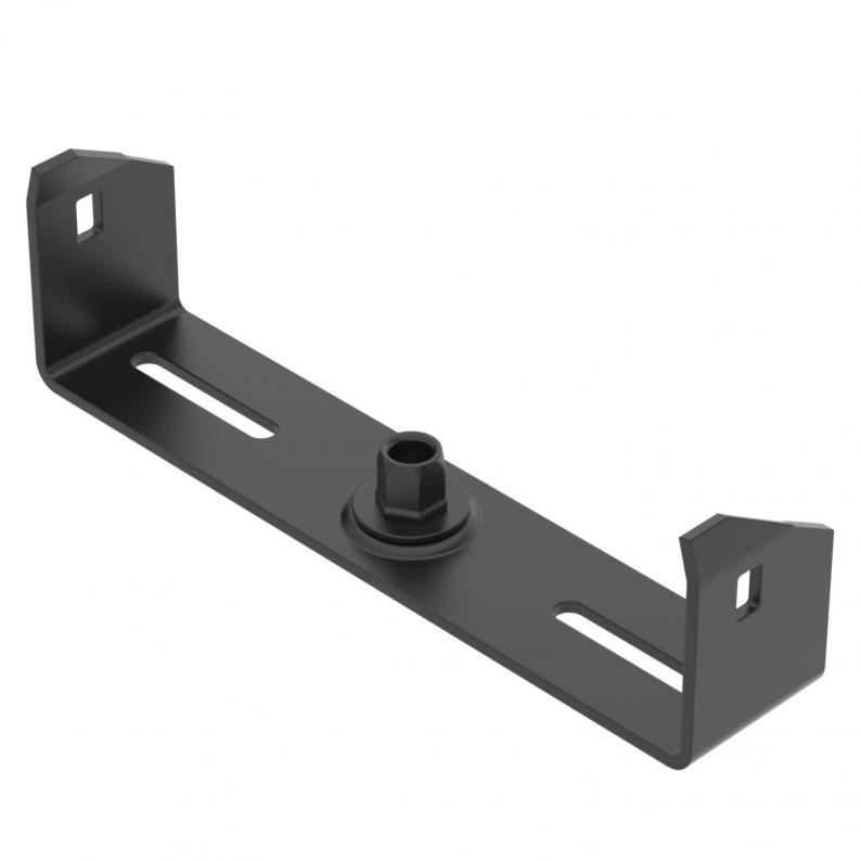 Mittenabhängung für Kabelrinnen mit eingerolltem Seitenholm in der Seitenhöhe 60 mm. Schwarz beschichtet.