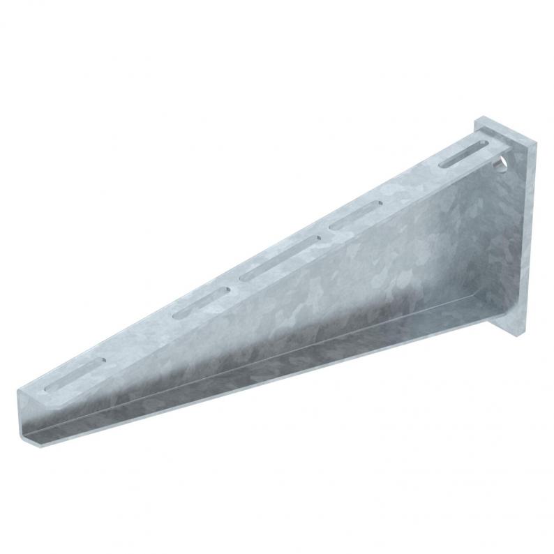 Bei der Befestigung von Kabelrinnen- und leitern mit Flachrundschrauben der Größe M6 bitte Großflächenscheibe separat bestellen (Lochung im Ausleger 9 x ...).