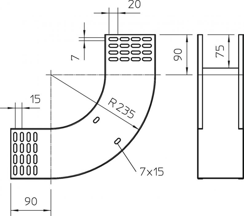 Vertikalbogen 90° in steigender Ausführung für alle Kabelrinnentypen mit der Seitenhöhe 110 mm.