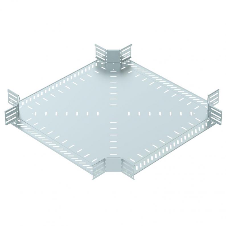 Kreuzung zum Erstellen einer horizontalen Abzweigung, Formteil für rast- und schraubbare Kabelrinnen Seitenhöhe 85 mm. Schraubenlose Montage mit Doppelklemmen oder Schraubverbindung mit Flachrundschrauben FRS und Kombimuttern M6. Einsetzbar im Innenbereich. Befestigungsmaterial muss separat bestellt werden.