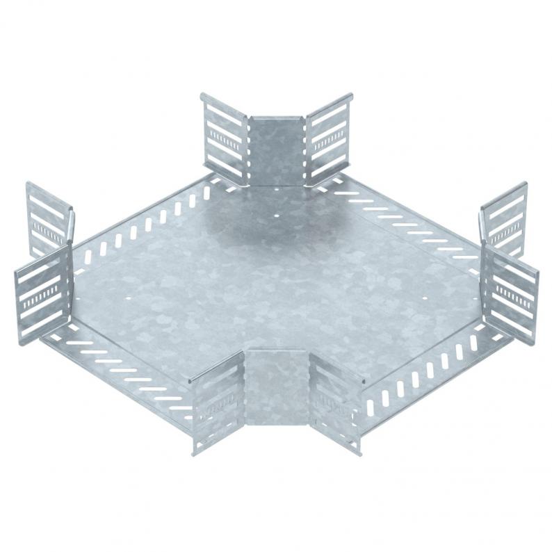 Kreuzung zum Erstellen einer horizontalen Abzweigung, Formteil für rast- und schraubbare Kabelrinnen Seitenhöhe 110 mm. Schraubenlose Montage mit Doppelklemmen oder Schraubverbindung mit Flachrundschrauben FRS und Kombimuttern M6. Einsetzbar im Innen- und Außenbereich. Befestigungsmaterial muss separat bestellt werden.