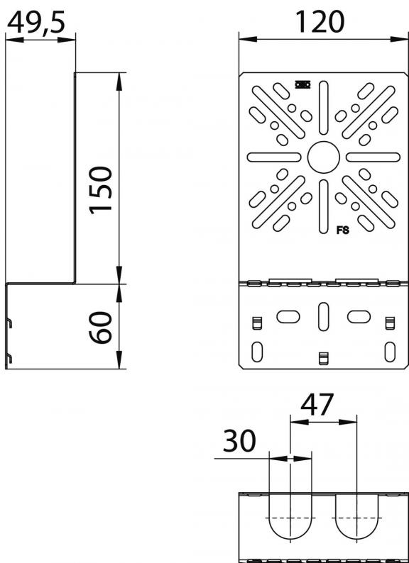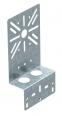 Abgewinkelte Montageplatte zur Befestigung am Seitenholm der Kabelrinne.