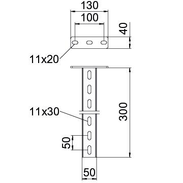 Hängestiel (U-Profil) in der Abmessung 50 x 30 mm mit angeschweißter Kopfplatte. Zur Befestigung an waagerechten Betondecken und Stahlträgern. Pulverbeschichtet in tiefschwarz (RAL 9005). Ab der Auslegerbreite 400mm oder der Montage des Auslegers am Ende des Hängestiels empfiehlt sich der Einsatz des Distanzstücks Typ DSK 25.