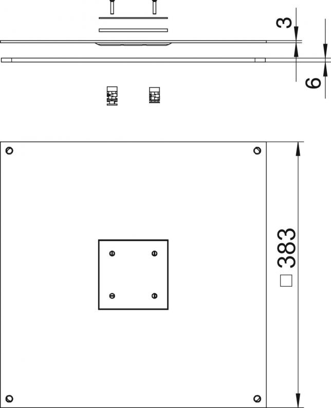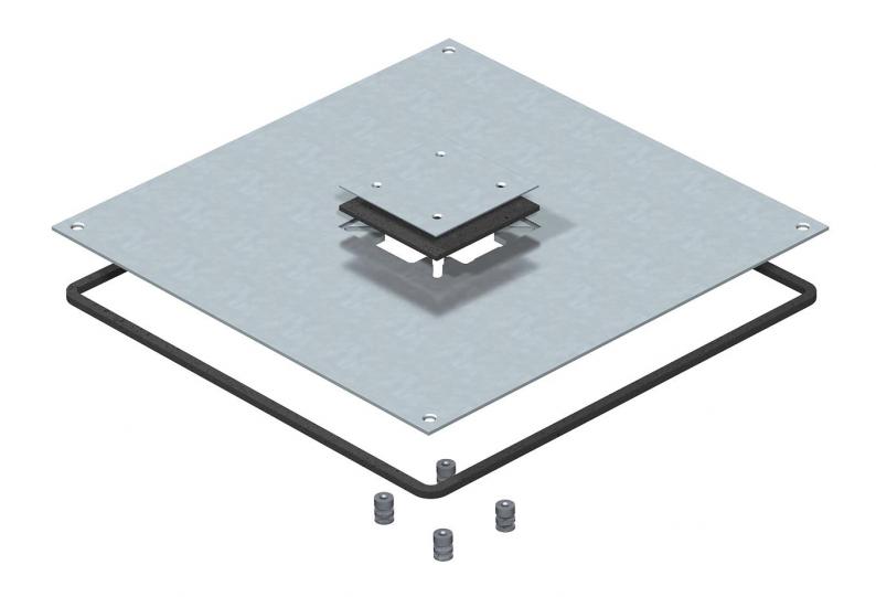 Montagedeckel für Unterflur-Zug- und -Abzweigdosen vom Typ UZD350-3/4 zum Aufbau eines Telitanks. Einbauöffnung 3 mm vertieft zum nachträglichen Blindverschluss mit Deckelblindplatte.