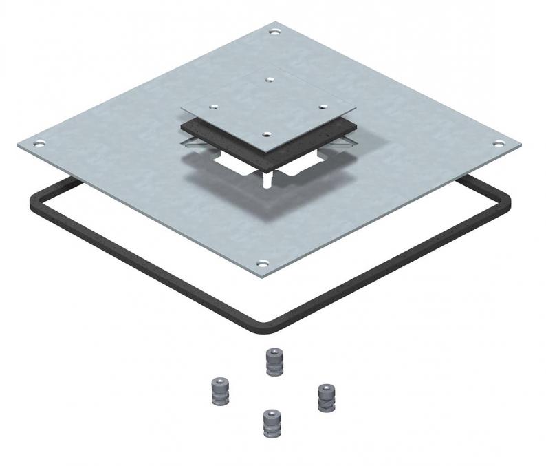 Montagedeckel für Unterflur-Zug- und -Abzweigdosen vom Typ UZD250-3/4. Einbauöffnung 3 mm vertieft zum nachträglichen Blindverschluss mit Deckelblindplatte.