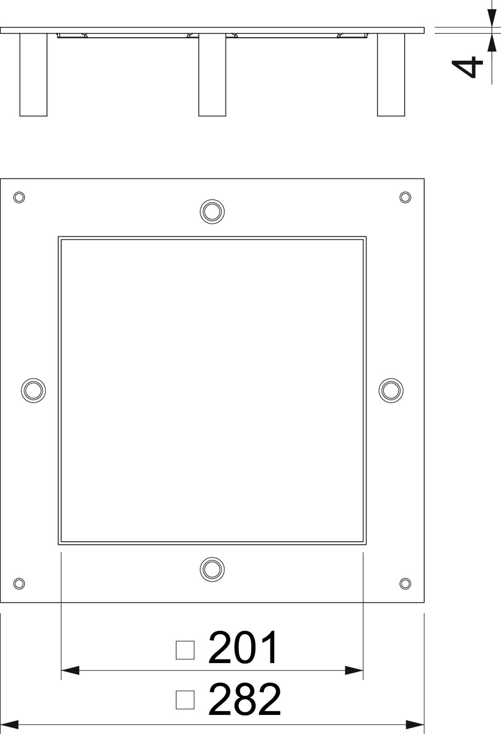 Der Schwerlast-Montagedeckel für die Unterflurdose vom Typ UZD250 eignet sich zum Einbau einer quadratischen Schwerlastkassette der Nenngröße 4. Die Einbauöffnung ist um 3 mm vertieft und kann dadurch nachträglich mit einer Deckelblindplatte verschlossen werden.