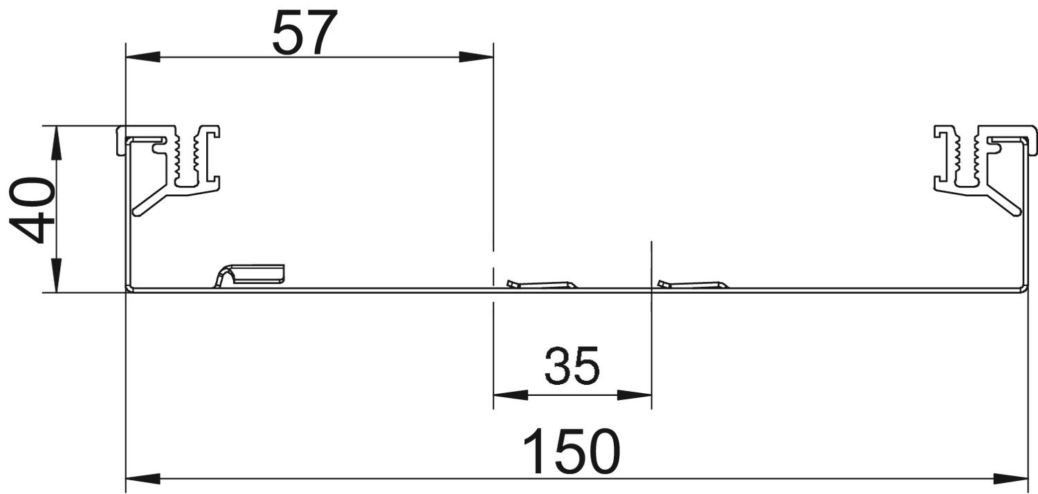 Abzweig-Aufflur-Installationskanal-Unterteil für Blind-/Montagedeckel mit beidseitiger Abschrägung, zur Montage frei auf dem Fußboden, mit aufsteckbaren Aluminium-Seitenprofilen zum Auflagern und Befestigen der Kanaldeckel. Kanalhöhe geeignet zum Aufbau von Telitanks.