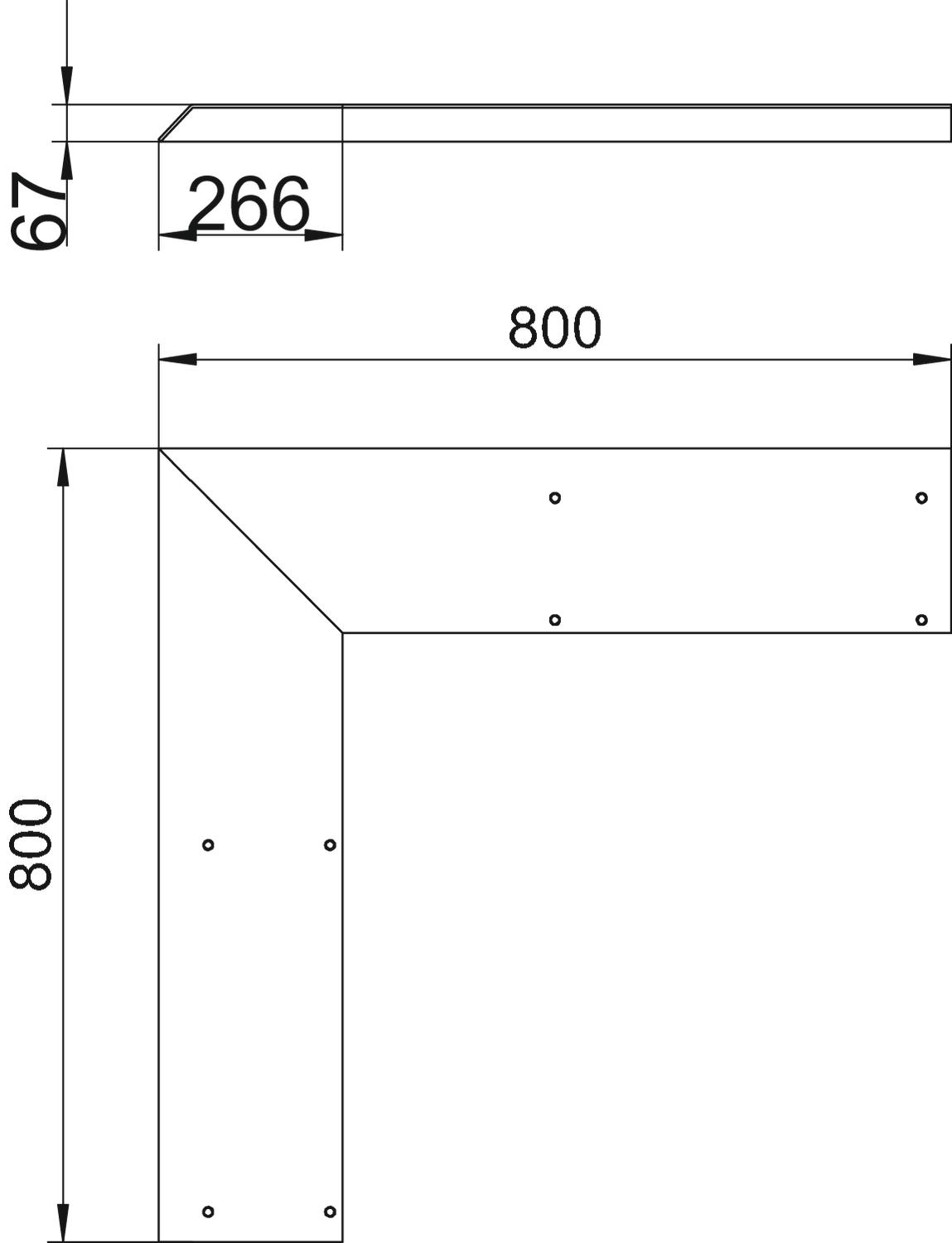 Blinddeckel 2-teilig zum Abdecken des Außenecks eines Aufbodenkanals, passend zu den Kanalunterteilen AIK/U inkl. 10 Befestigungsschrauben. Der Kanaldeckel wird in den Al-Seitenprofilen des Kanalunterteils festgeschraubt. Die Deckelschräge überragt das Kanalunterteil im 45°-Winkel.