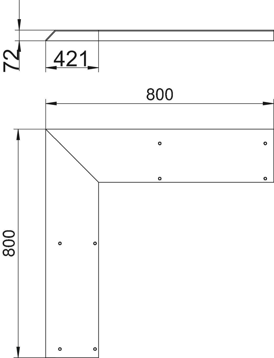 Blinddeckel 2-teilig zum Abdecken des Außenecks eines Aufbodenkanals, passend zu den Kanalunterteilen AIK/U inkl. 10 Befestigungsschrauben. Der Kanaldeckel wird in den Al-Seitenprofilen des Kanalunterteils festgeschraubt. Die Deckelschräge überragt das Kanalunterteil im 45°-Winkel.