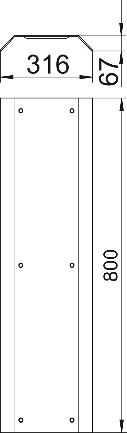 Aufflur-Blinddeckel zum Abdecken des Aufboden-Installationskanals AIK, passend zu den Kanalunterteilen AIK/U. Der Kanaldeckel wird in den Al-Seitenprofilen des Kanalunterteils festgeschraubt. Die Deckelschräge überragt das Kanalunterteil im 45°-Winkel.