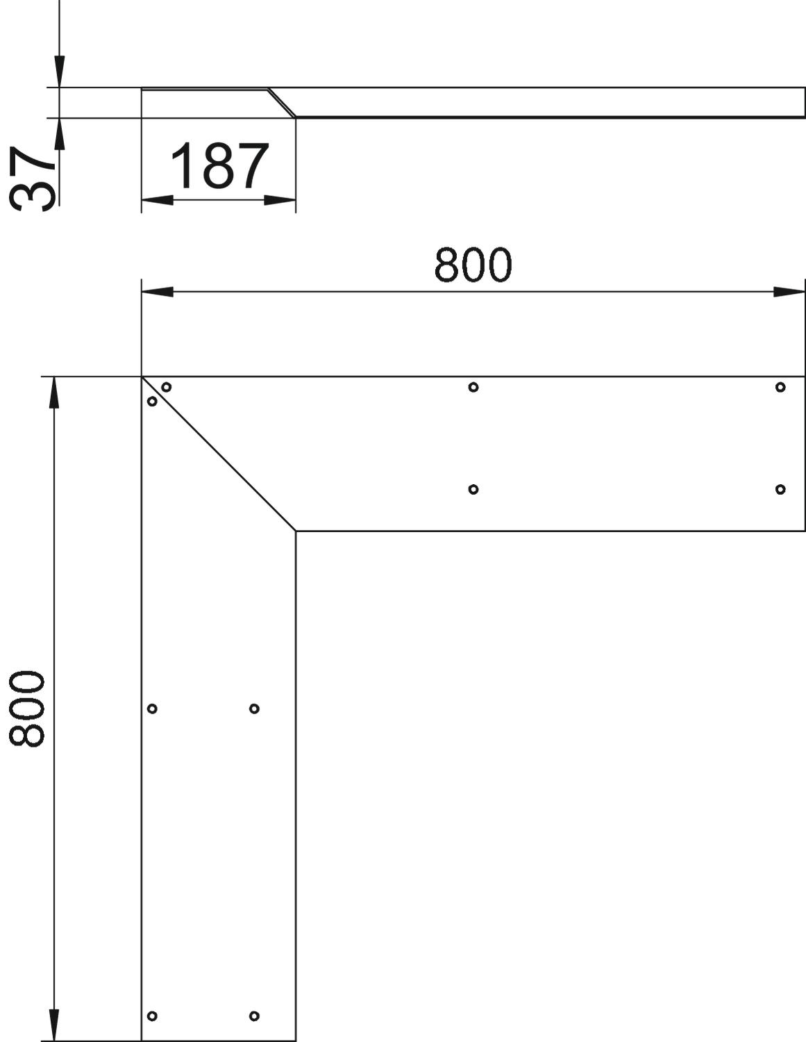 Blinddeckel 2-teilig zum Abdecken des Innenecks eines Aufflurkanals, passend zu den Kanalunterteilen AIK/U inkl. 10 Befestigungsschrauben. Der Kanaldeckel wird in den Al-Seitenprofilen des Kanalunterteils festgeschraubt. Die Deckelschräge überragt das Kanalunterteil im 45°-Winkel.