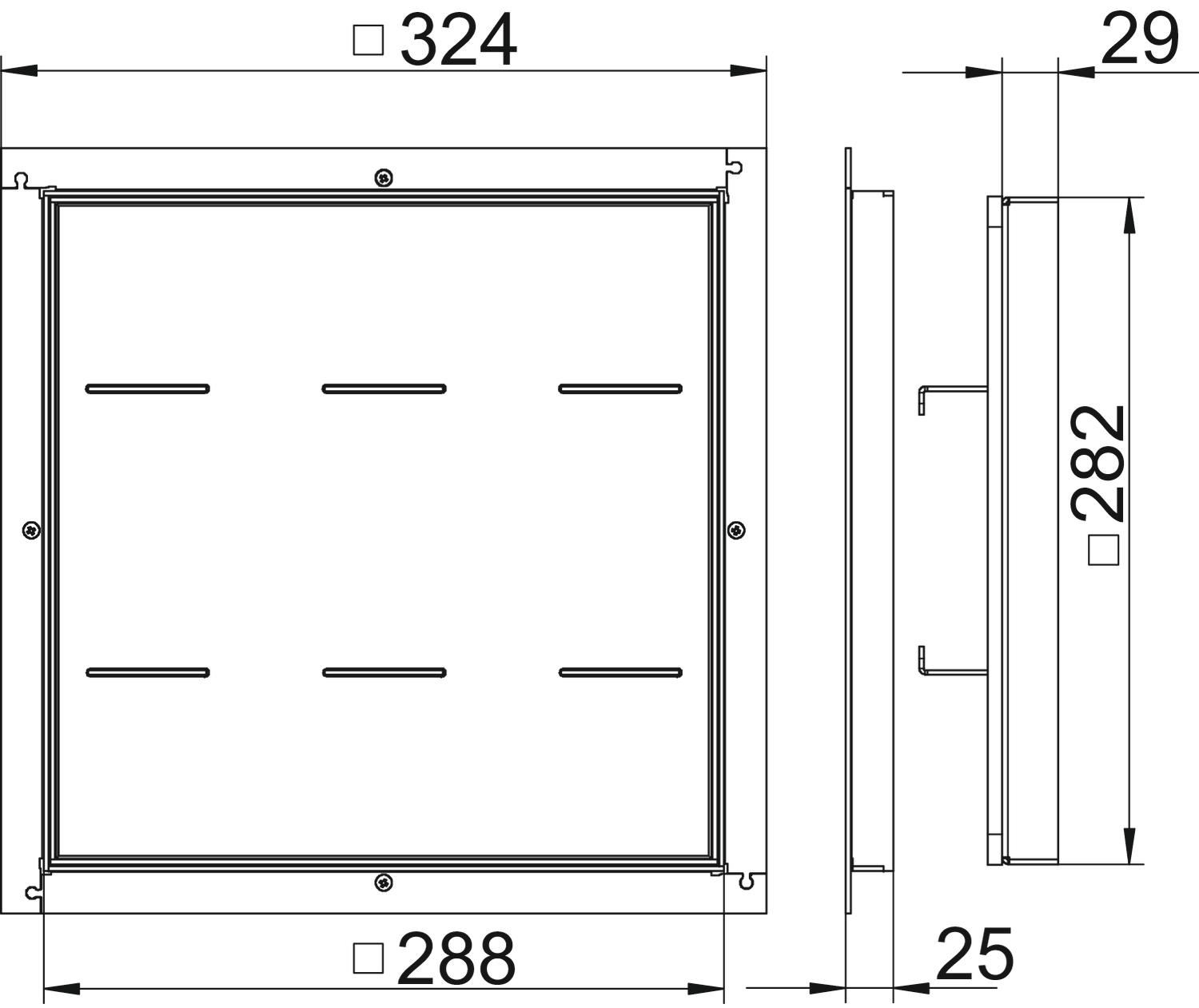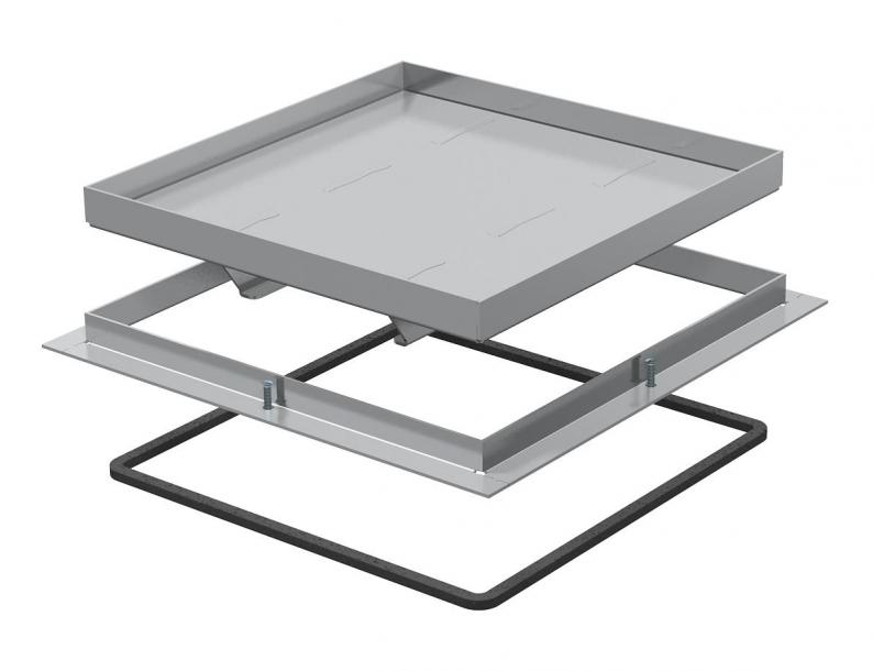 Rahmenkassette Schwerlast "blind" für die Herstellung einer Revisionsöffnung in der UZD250-3 in trocken oder nass gepflegten Fußböden. Belastungsklasse 2 bis 20 kN. Nur für glatte Bodenbeläge im Innenbereich geeignet.