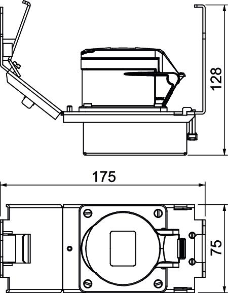 Geräteträger für CEE-Einbau, Systemlänge 165 mm, mit CEE