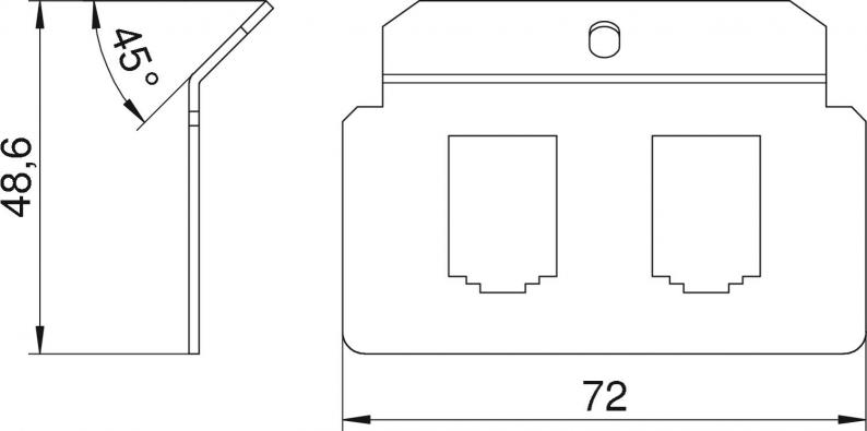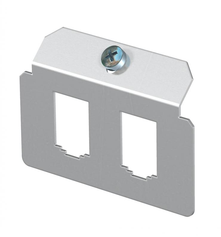 Trägerplatte zur Aufnahme von zwei Daten-Anschlussmodulen folgender Typen: BTR: E-DAT; Dätwyler: MS und MS-N; Kerpen: VarioKeystone.