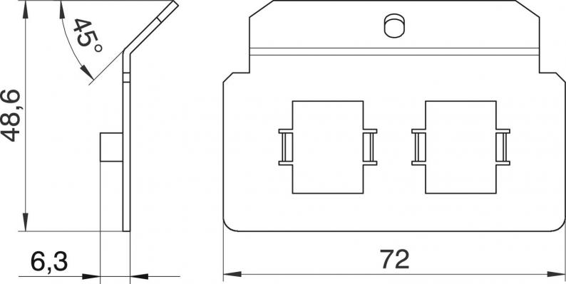 Trägerplatte zur Aufnahme von zwei Anschlussbuchsen der Datentechnik, Typ Krone Modul.