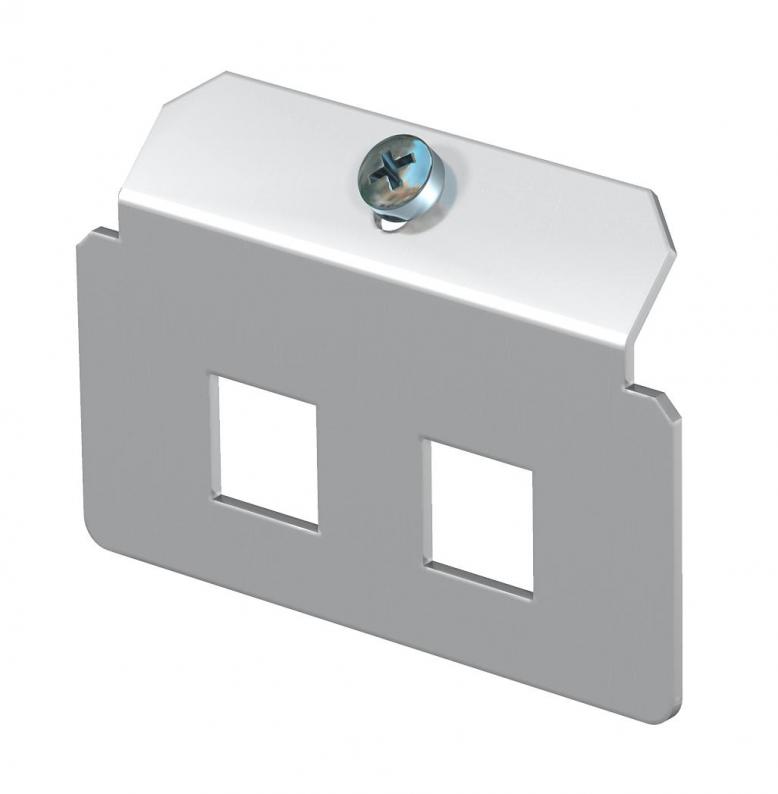 Trägerplatte zur Aufnahme von zwei LWL-Anschlussbuchsen der Datentechnik, Typ Systimax.