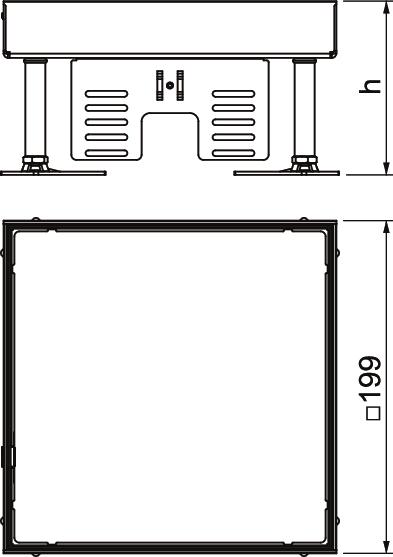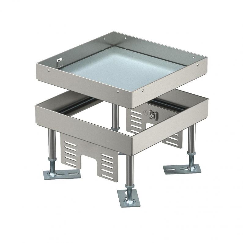 Nivellierbare quadratische Kassette "blind" für die Herstellung einer Revisionsöffnung der Nenngröße 4. Einbau in Kanalsystemen, Doppel- und Hohlböden in trocken oder nass gepflegten Fußböden im Innenbereich. Nur für glatte Bodenbeläge geeignet. Schutzklasse: IP X5.