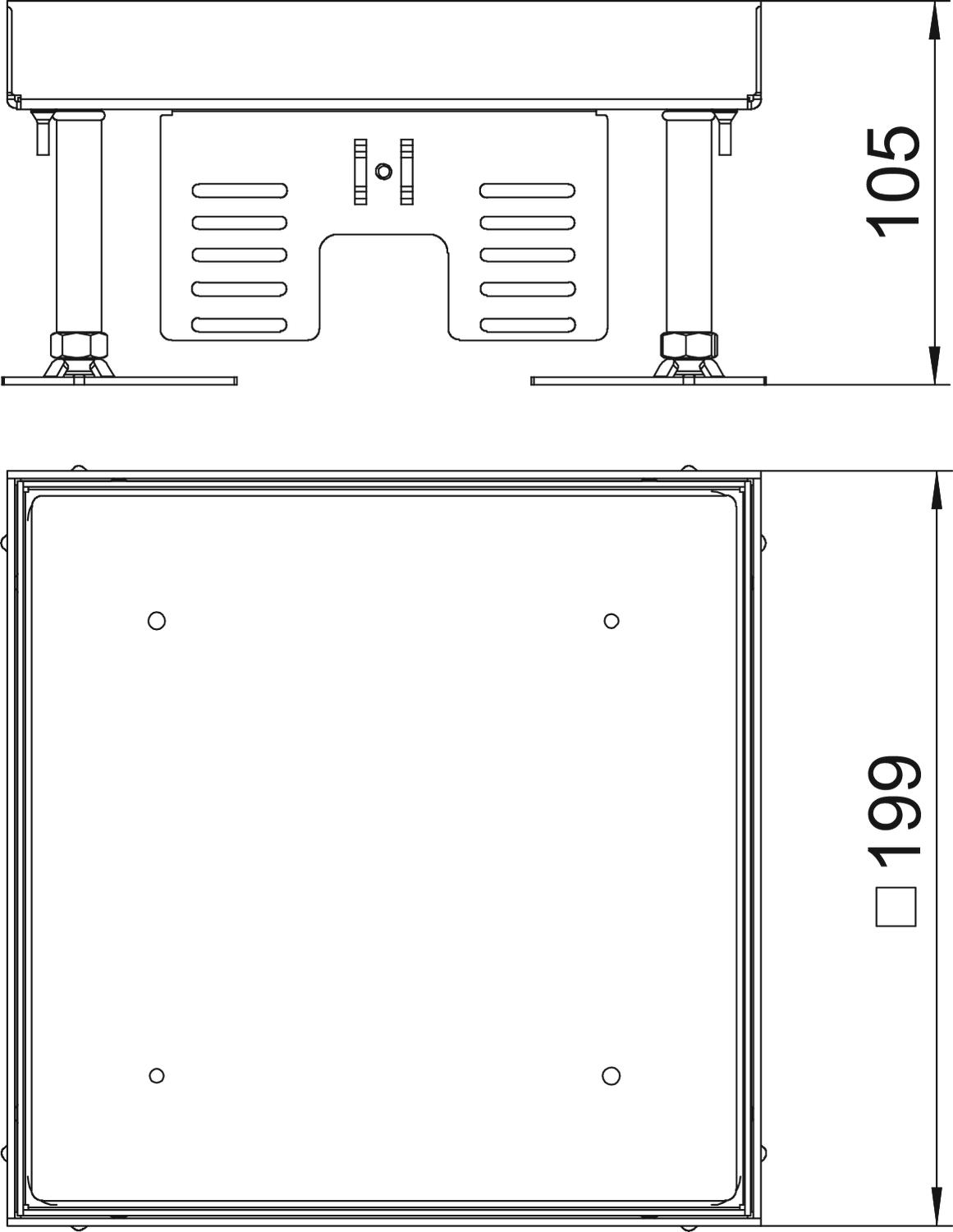 Nivellierbare Kassette "blind" für die Herstellung einer Revisionsöffnung der Nenngröße 4 in trocken oder nass gepflegten Fußböden im Innenbereich. Nur für glatte Bodenbeläge geeignet.