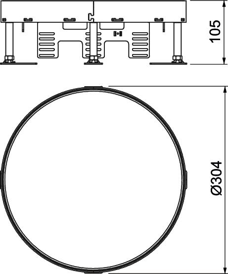 Nivellierbare Kassette als Blindkassette, 3-zügig. Es können 3 Abdeckplatten APMT5 installiert werden. Für den Einbau von 3 Universalträgern UT4 für 9 Einzel-Installationsgeräte mit Tragering/Tragebügel oder 12 Modul 45-Geräte.