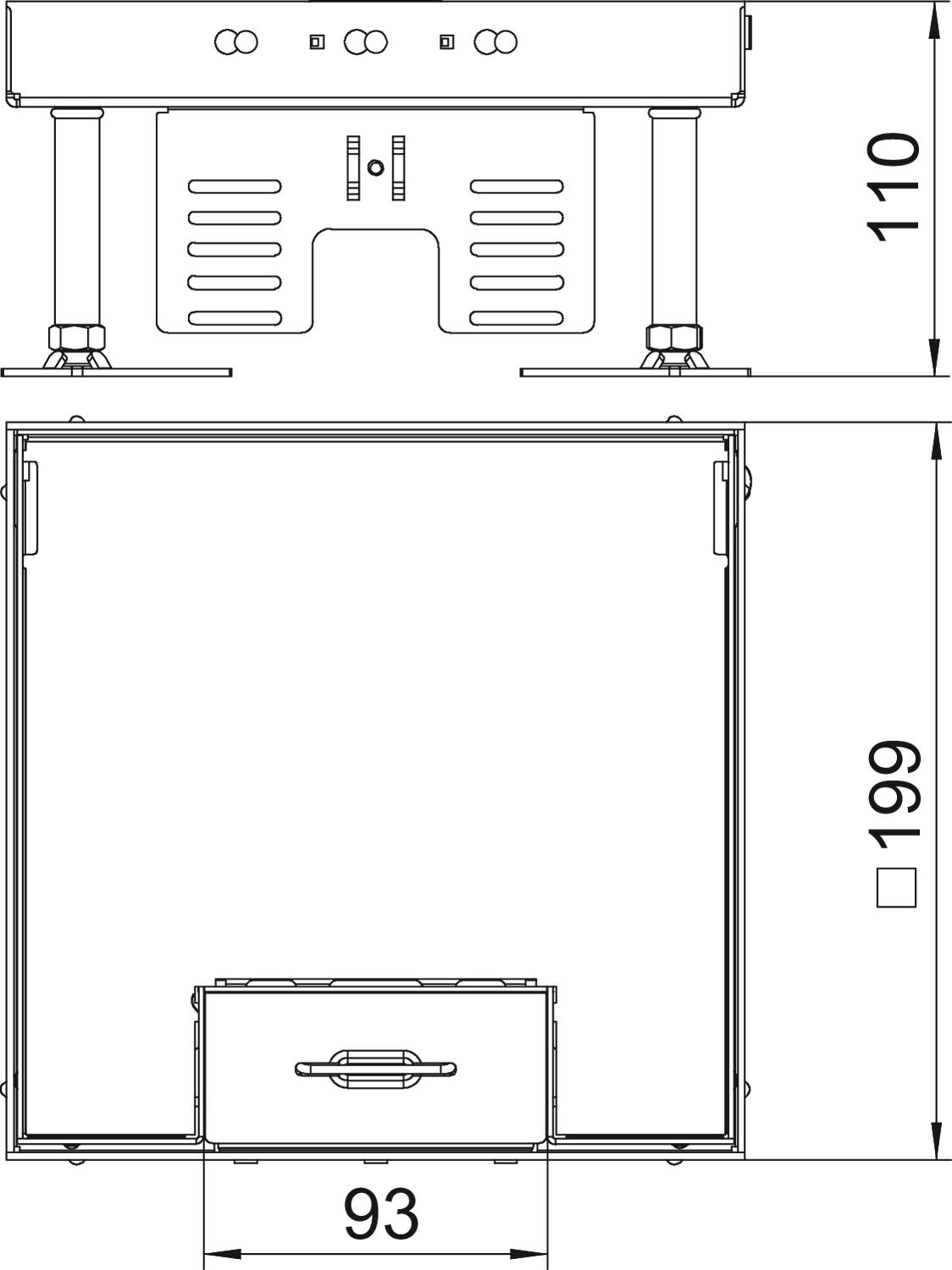 Nivellierbare Kassette der Nenngröße 4 mit Schnurauslass für den Einbau von Installationsgeräten in trocken gepflegten Fußböden im Innenbereich.