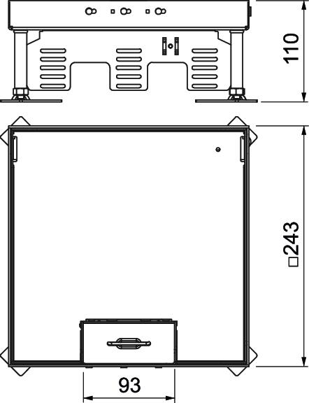 Nivellierbare Kassette der Nenngröße 9 mit Schnurauslass für den Einbau von Installationsgeräten in trocken gepflegten Fußböden im Innenbereich.