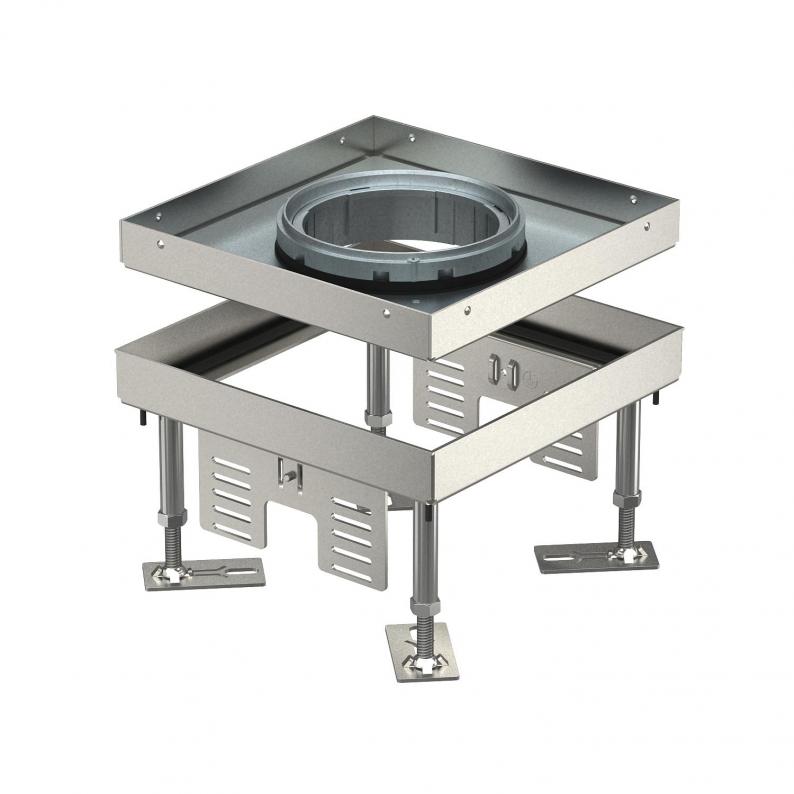 Nivellierbare Kassette der Nenngröße 4 für Tubus für den Einbau von Installationsgeräten in trocken oder nass gepflegten Fußböden im Innenbereich.