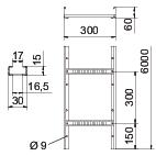 Kabelleiter mit gelochtem Seitenholm in der Seitenhöhe 60 mm mit eingenieteten, nach oben offenen C-Profil-Sprossen (Ausführung VS).