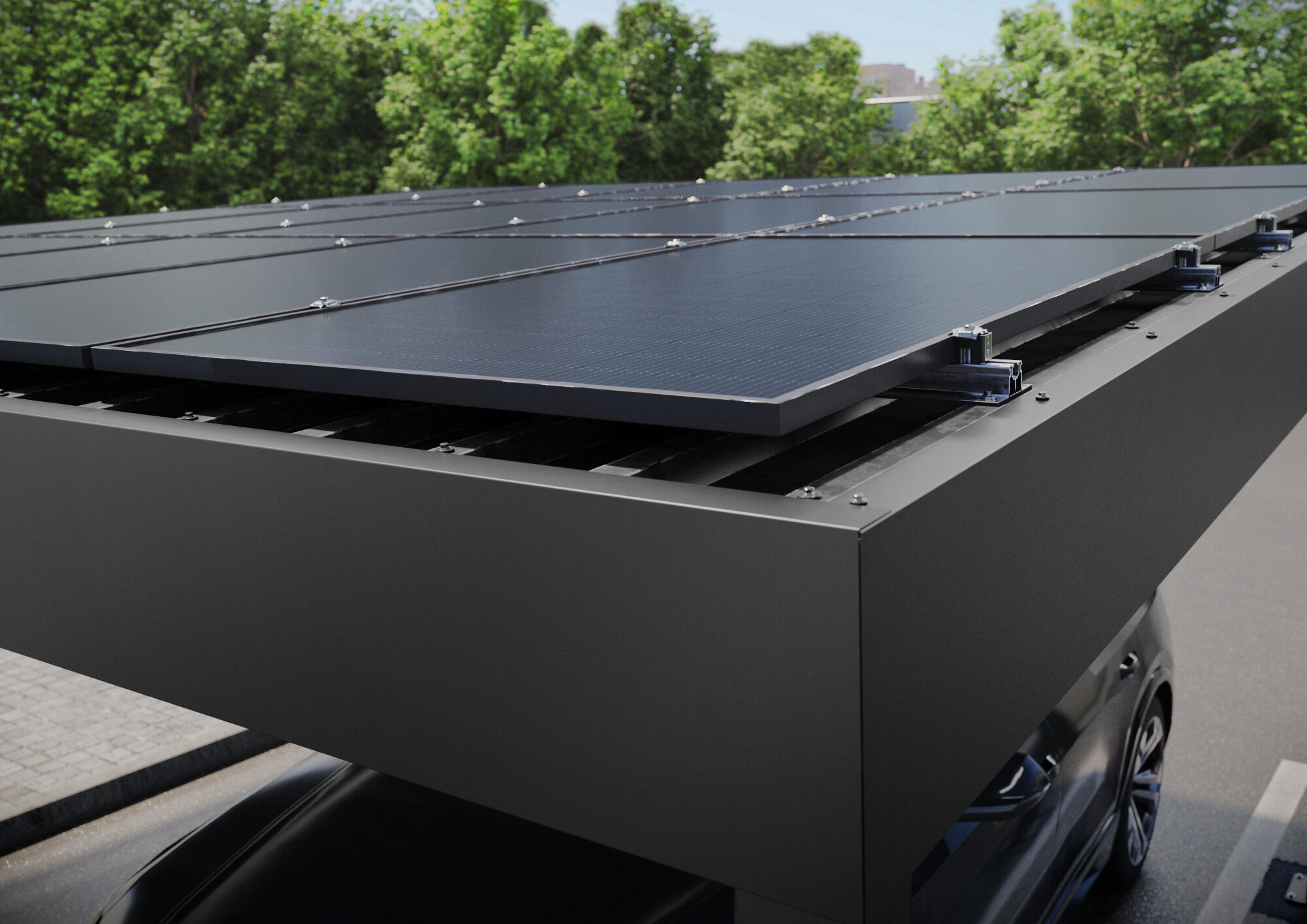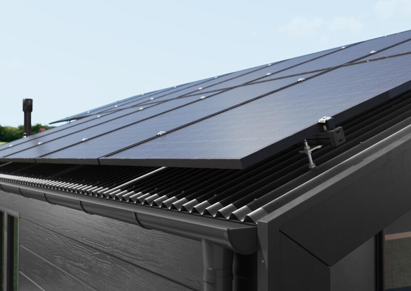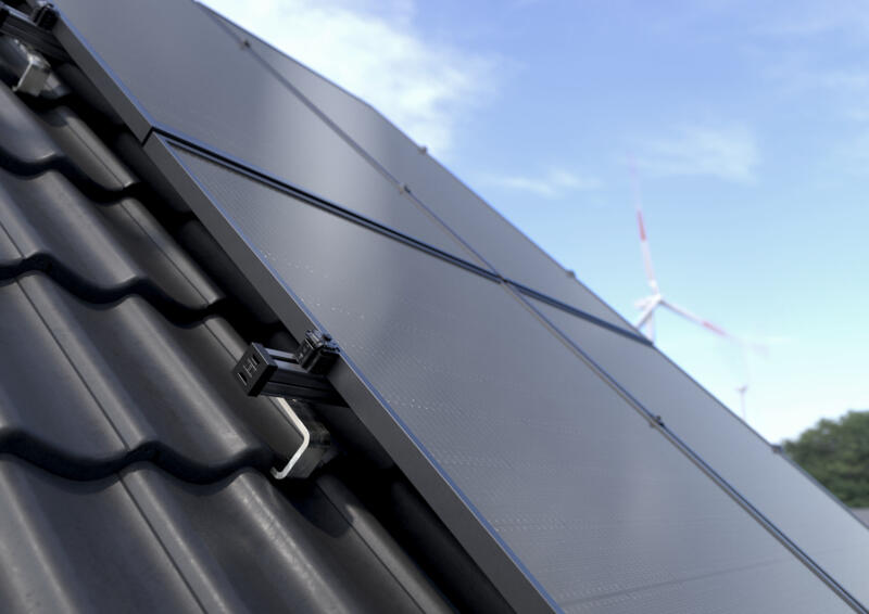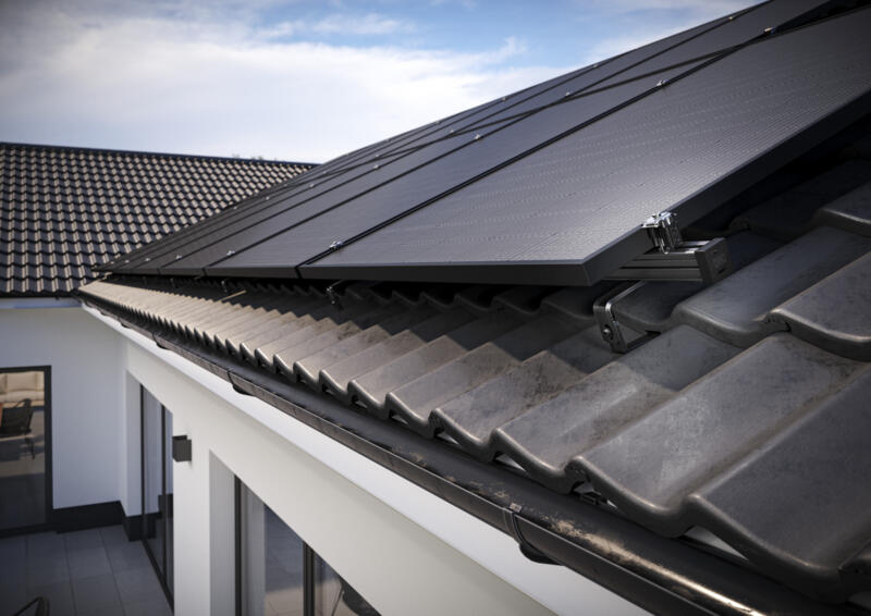 Das Montagesystem fĂŒr SchrĂ€gdachanlagen sorgt mit seiner Dachhakenlösung fĂŒr FlexibilitĂ€t: Sie kann jederzeit millimetergenau in sĂ€mtliche Richtungen justiert werden.