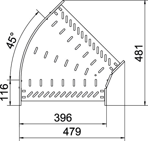 45°-Bogen zum Erstellen einer horizontalen Abzweigung, Formteil für rast- und schraubbare Kabelrinnen Seitenhöhe 85 mm. Schraubenlose Montage mit Doppelklemmen oder Schraubverbindung mit Flachrundschrauben FRS und Kombimuttern M6. Einsetzbar im Innen- und Außenbereich. Befestigungsmaterial muss separat bestellt werden.