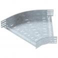 45°-Bogen zum Erstellen einer horizontalen Abzweigung, Formteil für rast- und schraubbare Kabelrinnen Seitenhöhe 85 mm. Schraubenlose Montage mit Doppelklemmen oder Schraubverbindung mit Flachrundschrauben FRS und Kombimuttern M6. Einsetzbar im Innen- und Außenbereich. Befestigungsmaterial muss separat bestellt werden.