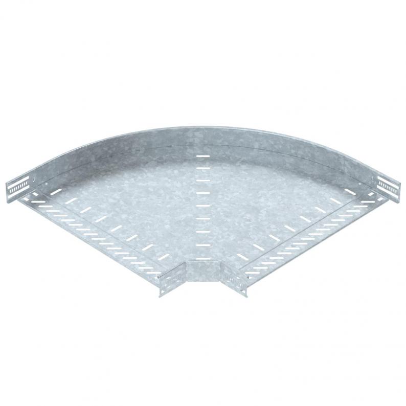 90°-Bogen zum Erstellen einer horizontalen Abzweigung, Formteil für rast- und schraubbare Kabelrinnen Seitenhöhe 60 mm. Schraubenlose Montage mit Doppelklemmen oder Schraubverbindung mit Flachrundschrauben FRS und Kombimuttern M6. Einsetzbar im Innen- und Außenbereich. Befestigungsmaterial muss separat bestellt werden.