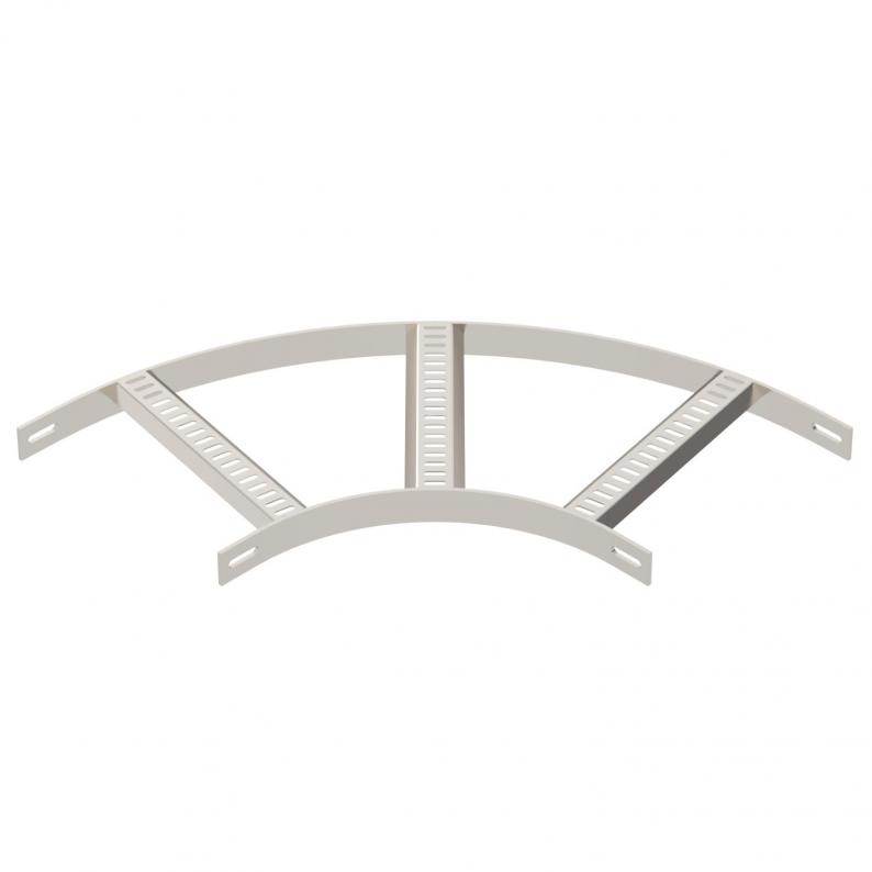 90° Bogen für Schiffsbau-Kabelleiter Typ SL 62 mit der Seitenhöhe 40 mm, mit eingeschweißten, nach unten offenen und gelochten Trapezsprossen.
