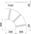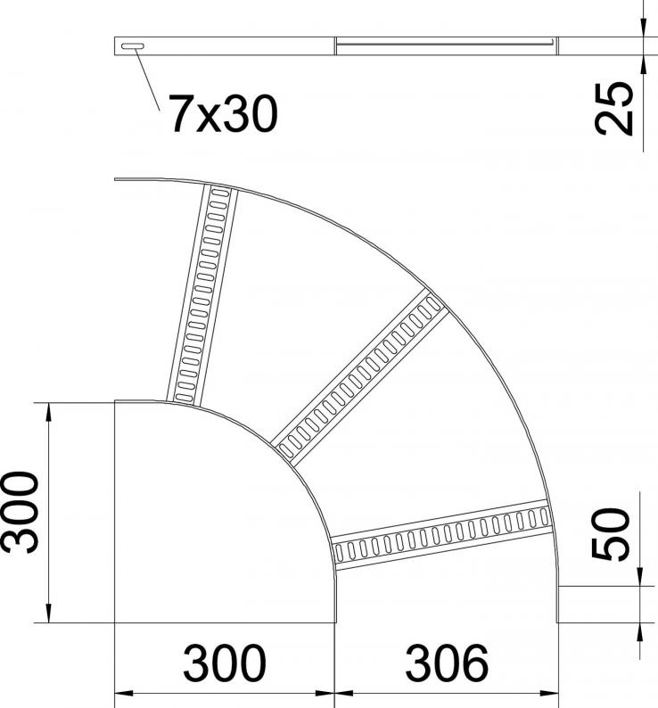 90° Bogen für Schiffsbau-Kabelleiter Typ SL 42 mit der Seitenhöhe 25 mm, mit eingeschweißten, nach unten offenen und gelochten Trapezsprossen.