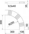 90° Bogen für Schiffsbau-Kabelleiter Typ SLZ L mit der Seitenhöhe 35 mm, mit eingeschweißten, gelochten Z-Sprossen.