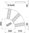 90° Bogen für Schiffsbau-Kabelleiter Typ SLZ mit der Seitenhöhe 40 mm, mit eingeschweißten, gelochten Z-Sprossen.