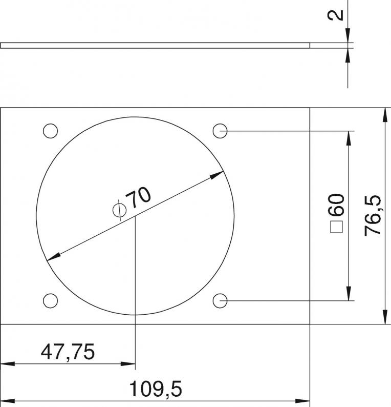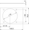 Abdeckplatte mit 1 Lochung (Ø 70 mm) und 60 x 60 mm Schraubbefestigung für CEE-Steckdosen, passend zur T4B-Längsseite (1/1-Abdeckung).
