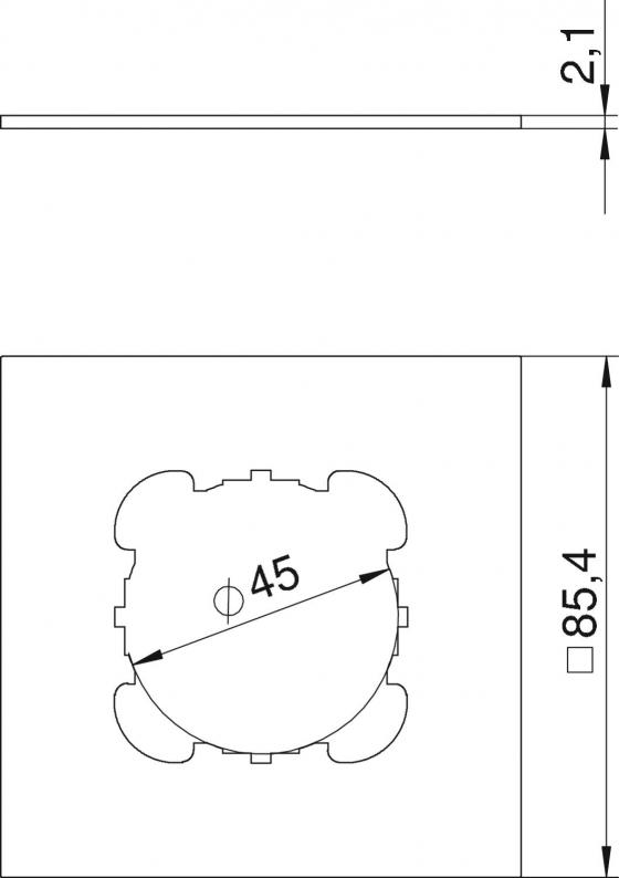 Abdeckplatte mit 1 Lochung (Ø 45 mm) für ein Installationsgerät mit Tragering, passend zur T4L- und T8NL-Schmalseite.