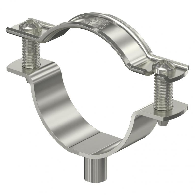 Abstandschelle zur Montage von Rohren und Kabeln an Wand, Decke und Boden. Mit selbstsicherndem Oberteil. Befestigung über Ansatz mit Innengewinde. Zugelassen für den Funktionserhalt nach DIN 4102 Teil 12, Funktionserhaltklassen E 30 bis E 90.