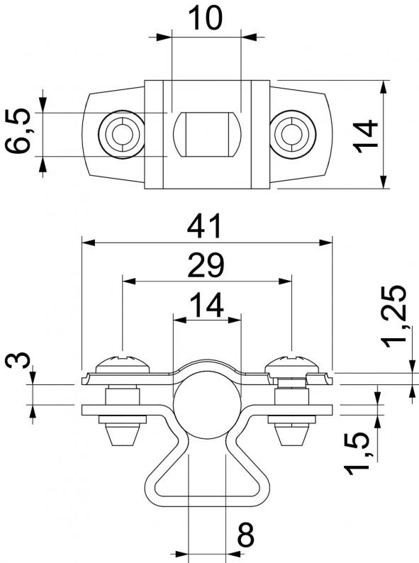 Abstandschelle zur Montage von Rohren und Kabeln an Wand, Decke und Boden. Mit selbstsicherndem Oberteil. Befestigung über Langloch.