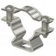 Abstandschelle zur Montage von Rohren und Kabeln an Wand, Decke und Boden. Mit selbstsicherndem Oberteil. Befestigung über Langloch.