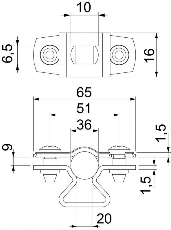Abstandschelle zur Montage von Rohren und Kabeln an Wand, Decke und Boden. Mit selbstsicherndem Oberteil. Befestigung über Langloch.