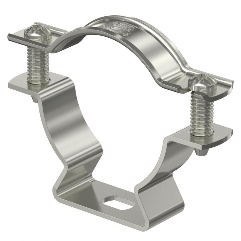 Abstandschelle zur Montage von Rohren und Kabeln an Wand, Decke und Boden. Mit selbstsicherndem Oberteil. Befestigung über Langloch.