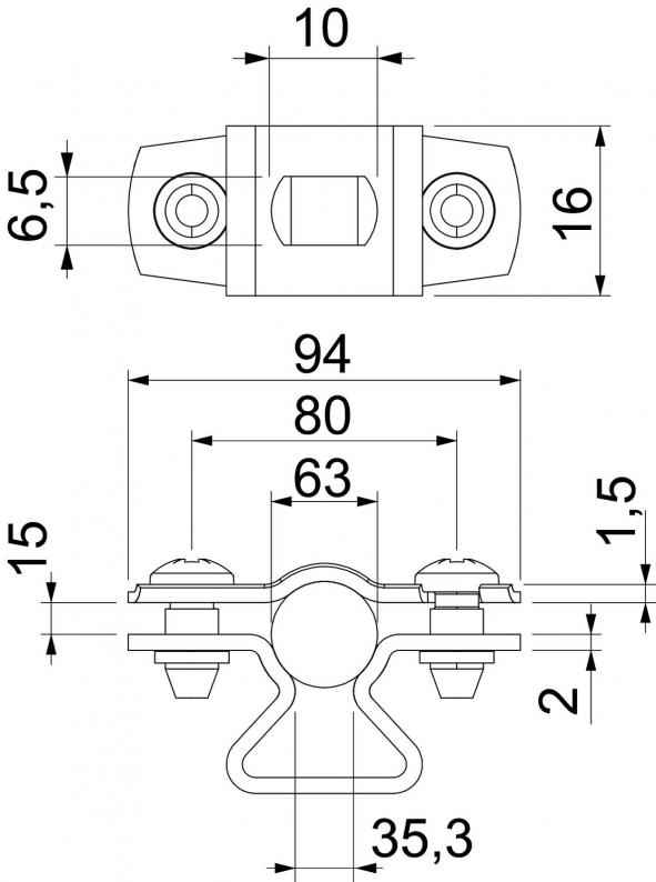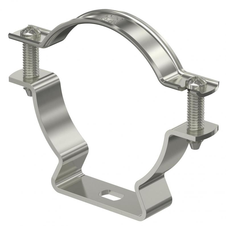 Abstandschelle zur Montage von Rohren und Kabeln an Wand, Decke und Boden. Mit selbstsicherndem Oberteil. Befestigung über Langloch.