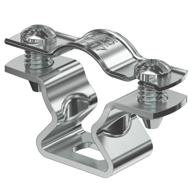 Abstandschelle zur Montage von Rohren und Kabeln an Wand, Decke und Boden. Mit selbstsicherndem Oberteil. Befestigung über Langloch.