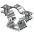 Abstandschelle zur Montage von Rohren und Kabeln an Wand, Decke und Boden. Mit selbstsicherndem Oberteil. Befestigung über Langloch.