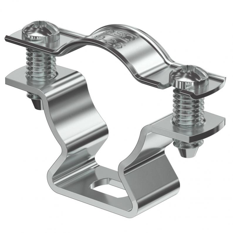 Abstandschelle zur Montage von Rohren und Kabeln an Wand, Decke und Boden. Mit selbstsicherndem Oberteil. Befestigung über Langloch.