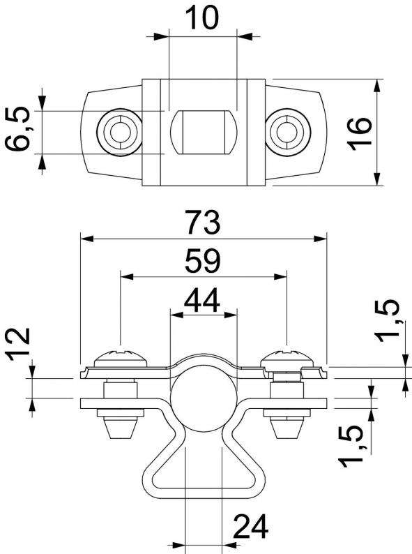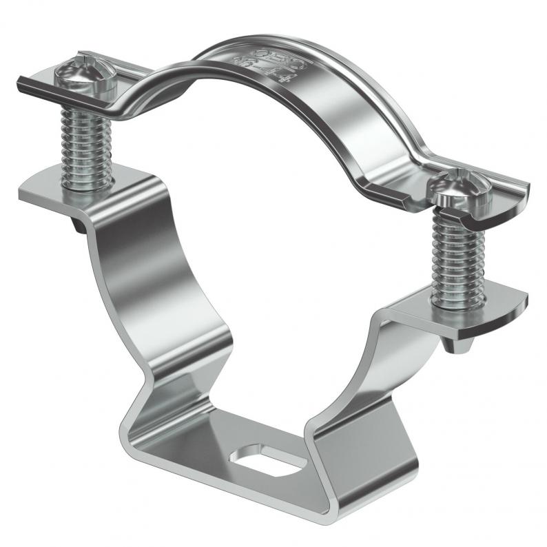 Abstandschelle zur Montage von Rohren und Kabeln an Wand, Decke und Boden. Mit selbstsicherndem Oberteil. Befestigung über Langloch.