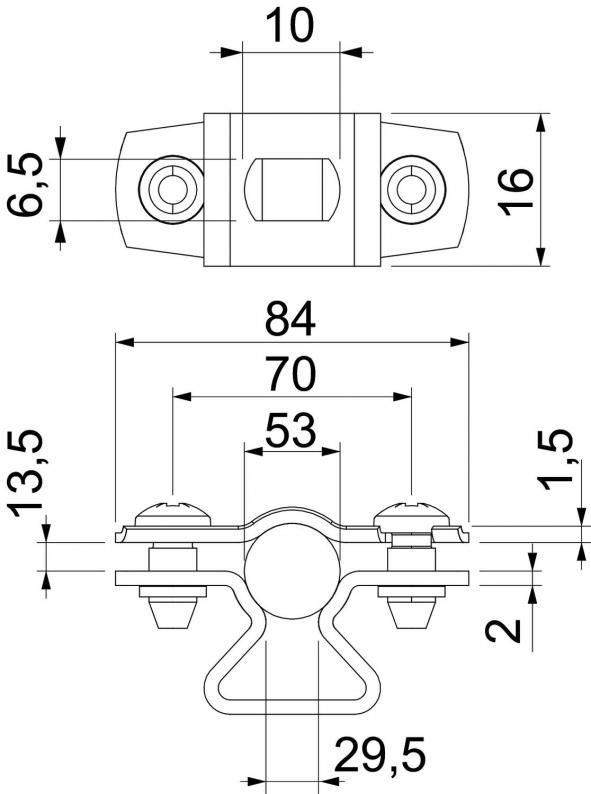 Abstandschelle zur Montage von Rohren und Kabeln an Wand, Decke und Boden. Mit selbstsicherndem Oberteil. Befestigung über Langloch.