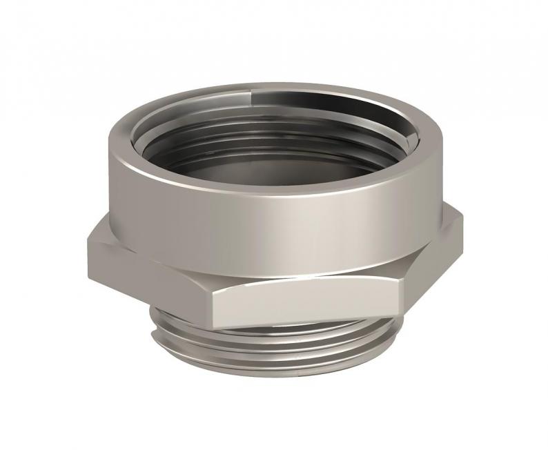Adapter von einer Pg-Gewindebohrung auf eine größere metrische Gewindebohrung.