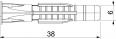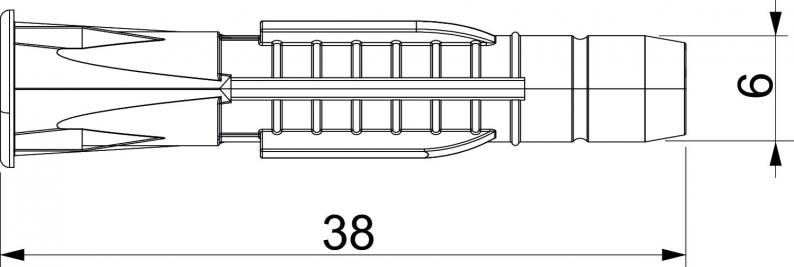 Auch als Hohlraumdübel geeignet, mit Kragen gegen Durchrutschen. 3 angesetzte Flossen nehmen das Drehmoment auf.